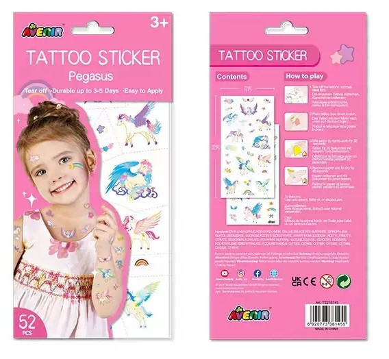 Varázslatos kalandok várnak ezzel az 50 darabos unikornisos tetoválás csomaggal az Avenir Kidstől! A színes, vidám minták között bájos unikornisok, szivárványok, csillagok és mesebeli kiegészítők találhatók, amelyek garantáltan feldobják a mindennapokat.