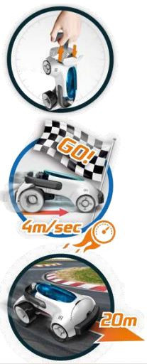 Építsd meg saját versenyautódat, amely nem elemmel vagy üzemanyaggal, hanem sűrített levegővel működik! A gyerekek lépésről lépésre szerelhetik össze a modellt, majd egy pumpálással feltölthetik energiával. 14 pumpálás után az autó akár 4 m/s sebességgel is elszáguld a padlón – látványosan bemutatva a levegő erejét.