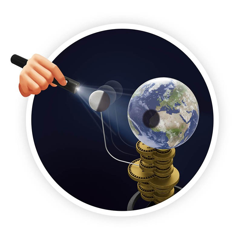 A modell átalakítható úgy, hogy a Föld és a Hold mozgását is bemutassa. A mellékelt lámpa segítségével a nap- és holdfogyatkozás is szemléltethető, ami még izgalmasabbá teszi a tanulást.