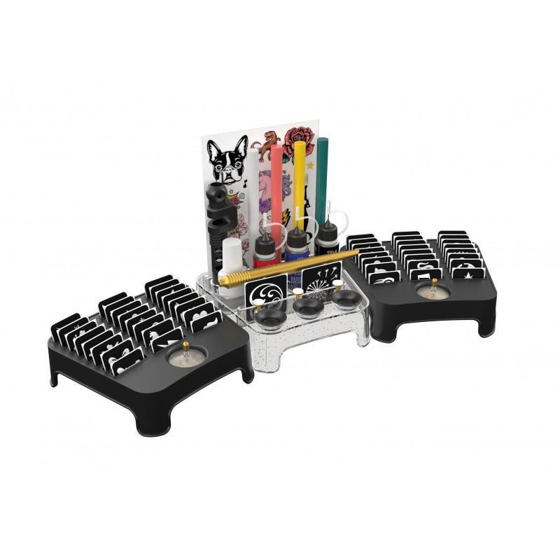 Alkosd meg saját mini tetováló szalonodat és készíts látványos, ideiglenes tetoválásokat magadnak, barátaidnak vagy családodnak! A Buki Professzionális Stúdió Tetováló készlettel a kreatív rajzolás és a sminktechnikák találkoznak, hogy bőrbarát, színes mintákat varázsolj pillanatok alatt.