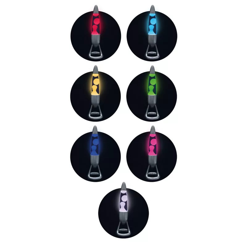 Varázslatos fények és modern stílus egyetlen kiegészítőben! A BUKI Magma lámpa 7 különböző színű LED világítással rendelkezik, amelyek automatikusan váltakoznak, így mindig egyedi hangulatot teremtenek a gyerekszobában vagy a tiniszobában. A 35 cm magas dekorlámpa elegáns megjelenésével feldobja a szoba hangulatát, miközben teljesen biztonságos: a stabil fém talp nem forrósodik fel használat közben.