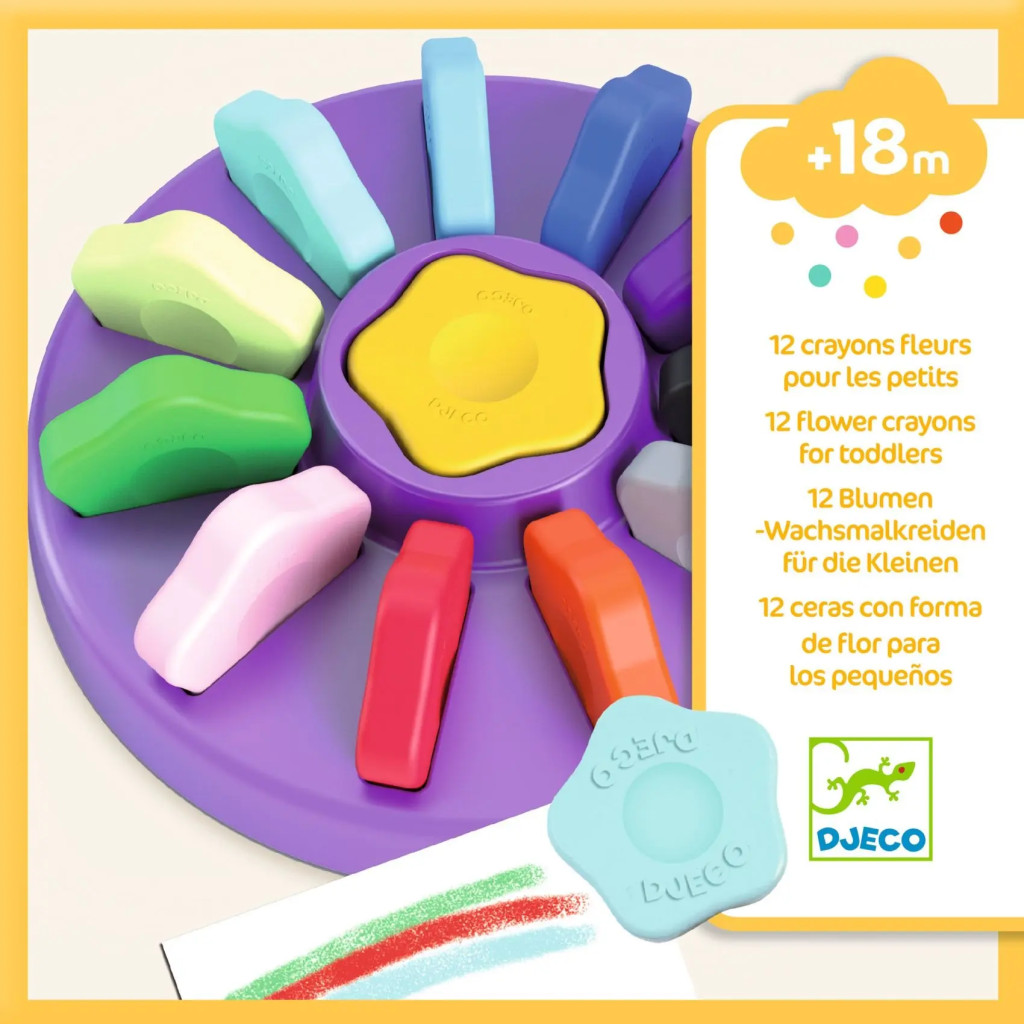 Tartalma: 12 db virág alakú zsírkréta (fekete, sárga, narancs, piros, rózsaszín, lila, barack, kék, sötétkék, türkiz, zöld, világoszöld)