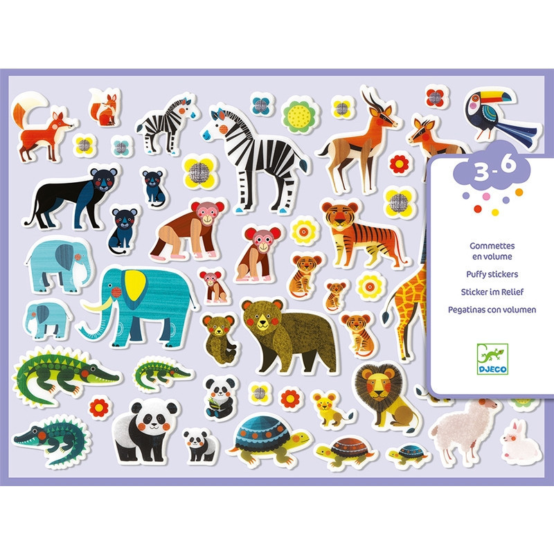 A pufi matrica készlet vadállatok anya és gyermek állatfiguráit ábrázolja.