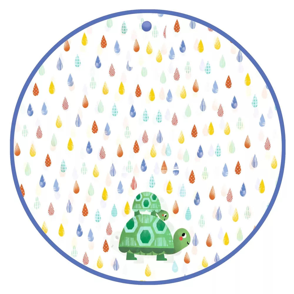 Praktikus és játékos megoldás esős napokra! A Djeco csuklyás esőköpeny teknős mintával nemcsak védelmet nyújt az eső ellen, hanem vidámmá teszi a borongós időt is.