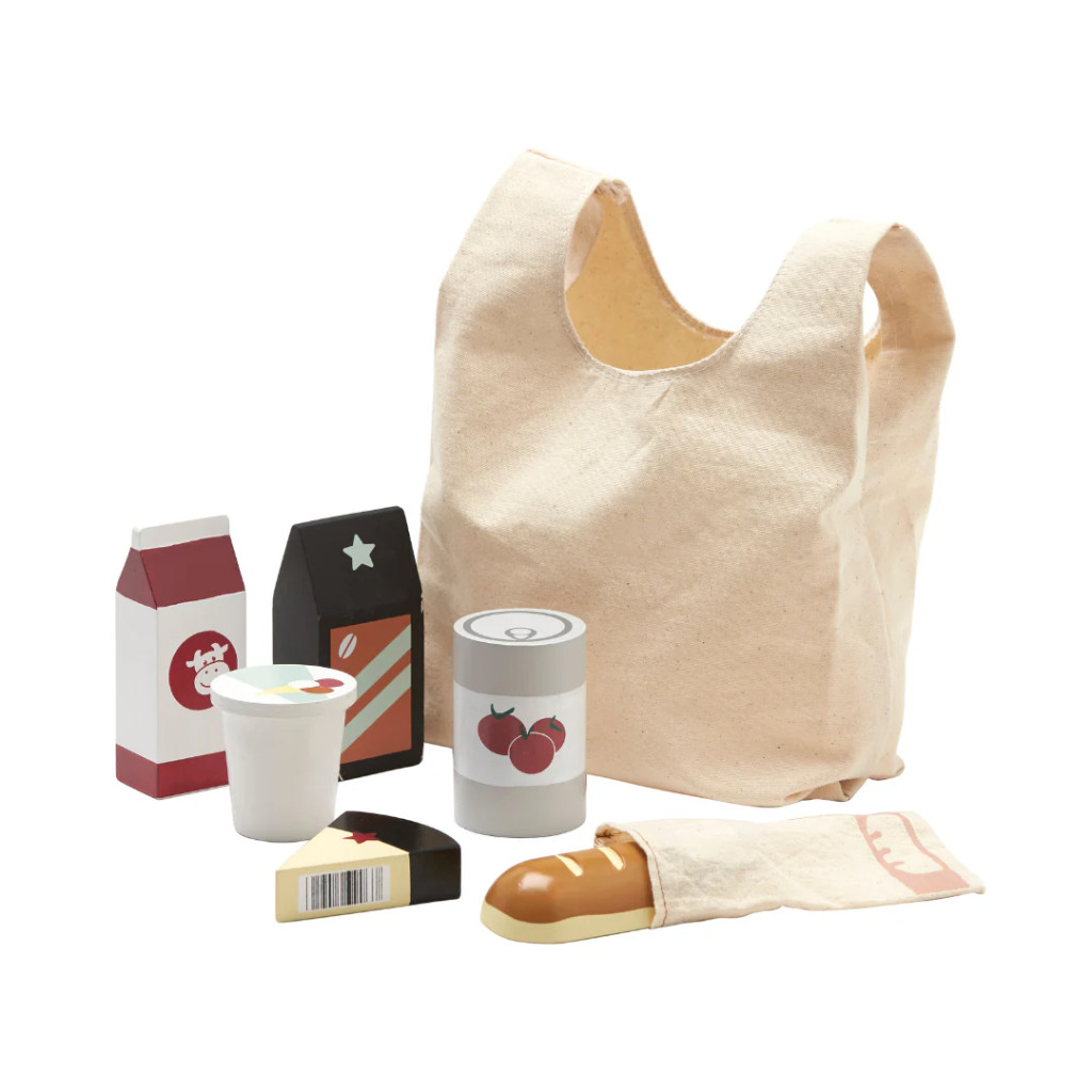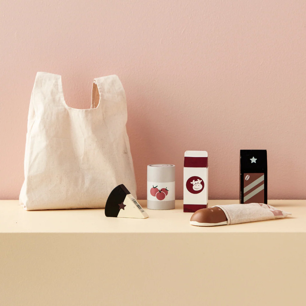A Kid’s Concept Bevásárló készlettel a gyerekszoba egy pillanat alatt piaccá vagy kisbolttá változik. A valódi vásárlás élményét idéző, letisztult skandináv dizájnú elemek remekül illeszkednek a játékkonyhához és a boltos szerepjátékokhoz. A fa élelmiszerek kézre állnak, masszívak és tartósak, miközben játékosan fejlesztik a kommunikációt, a szociális készségeket és a finommotorikát. A textil bevásárlótáska és a kenyérzsák praktikus kiegészítők: minden „áru” könnyen bepakolható, vihető, rendszerezhető.