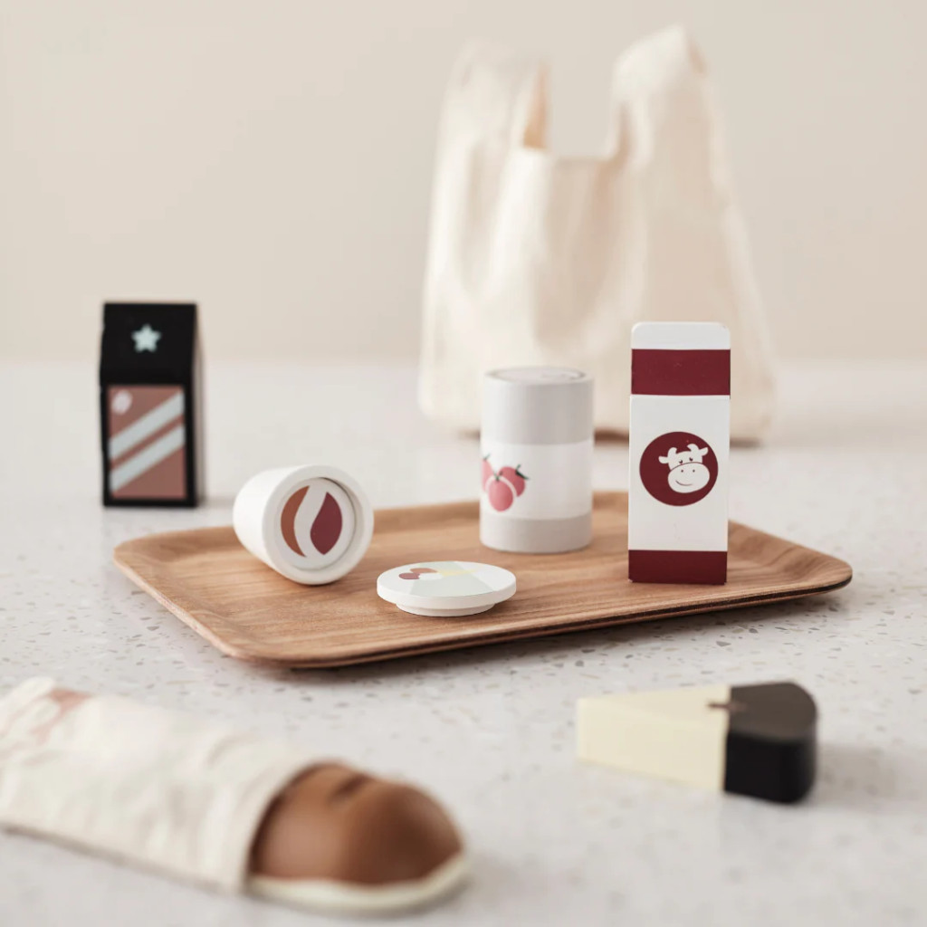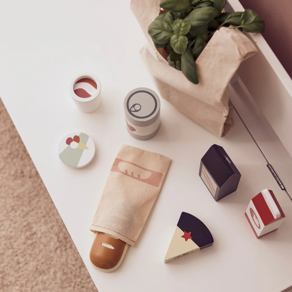Élethű, mégis gyermekbarát kialakítás, strapabíró fa elemek, gondosan válogatott „bevásárlás” tartalom és skandináv esztétika – mindez egy készletben.