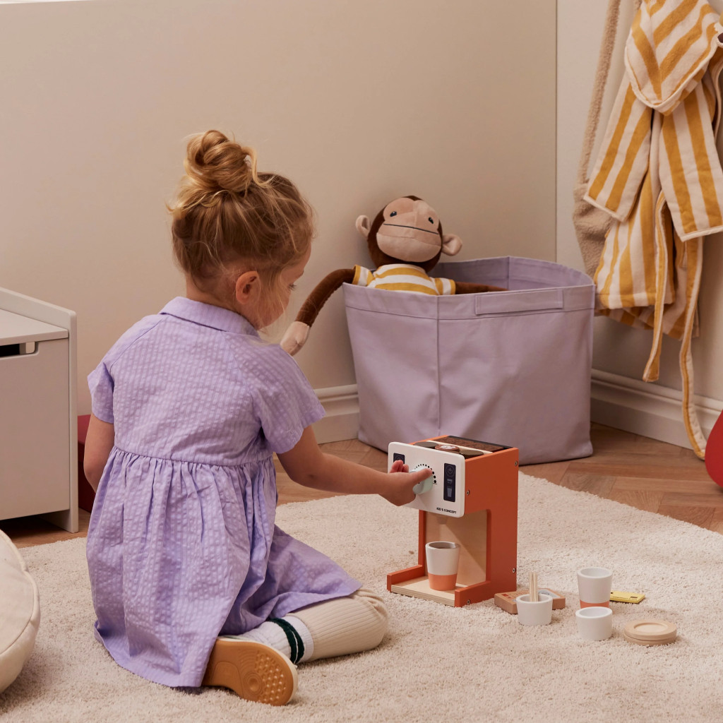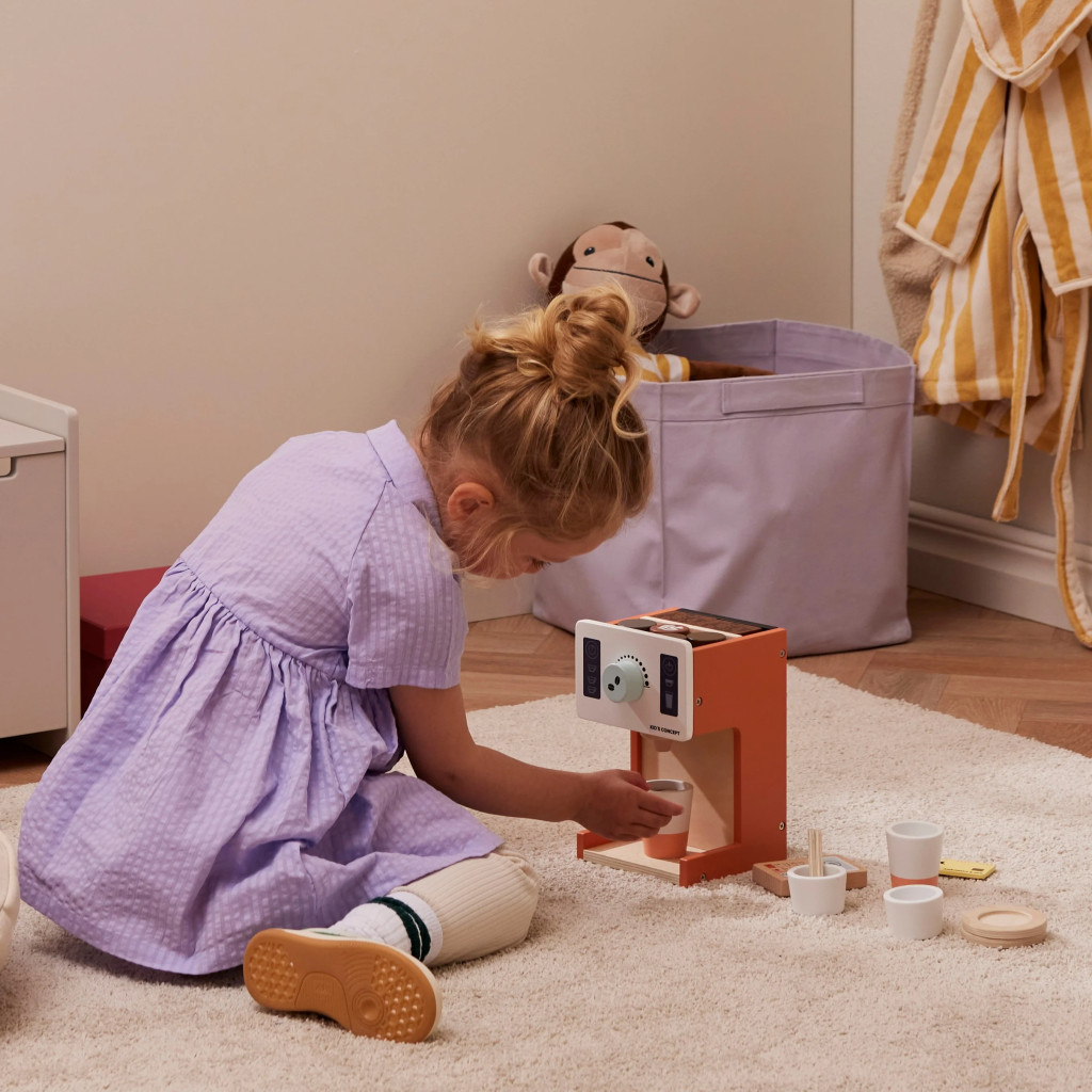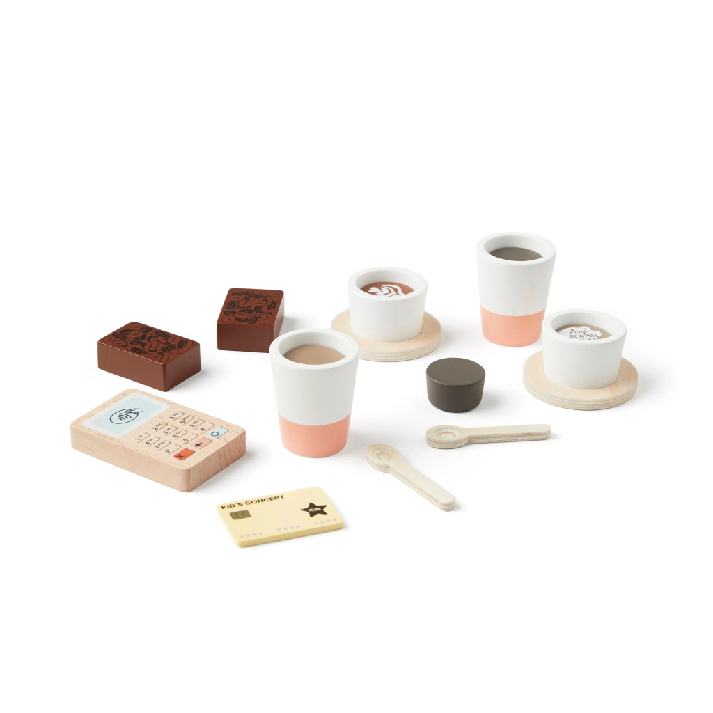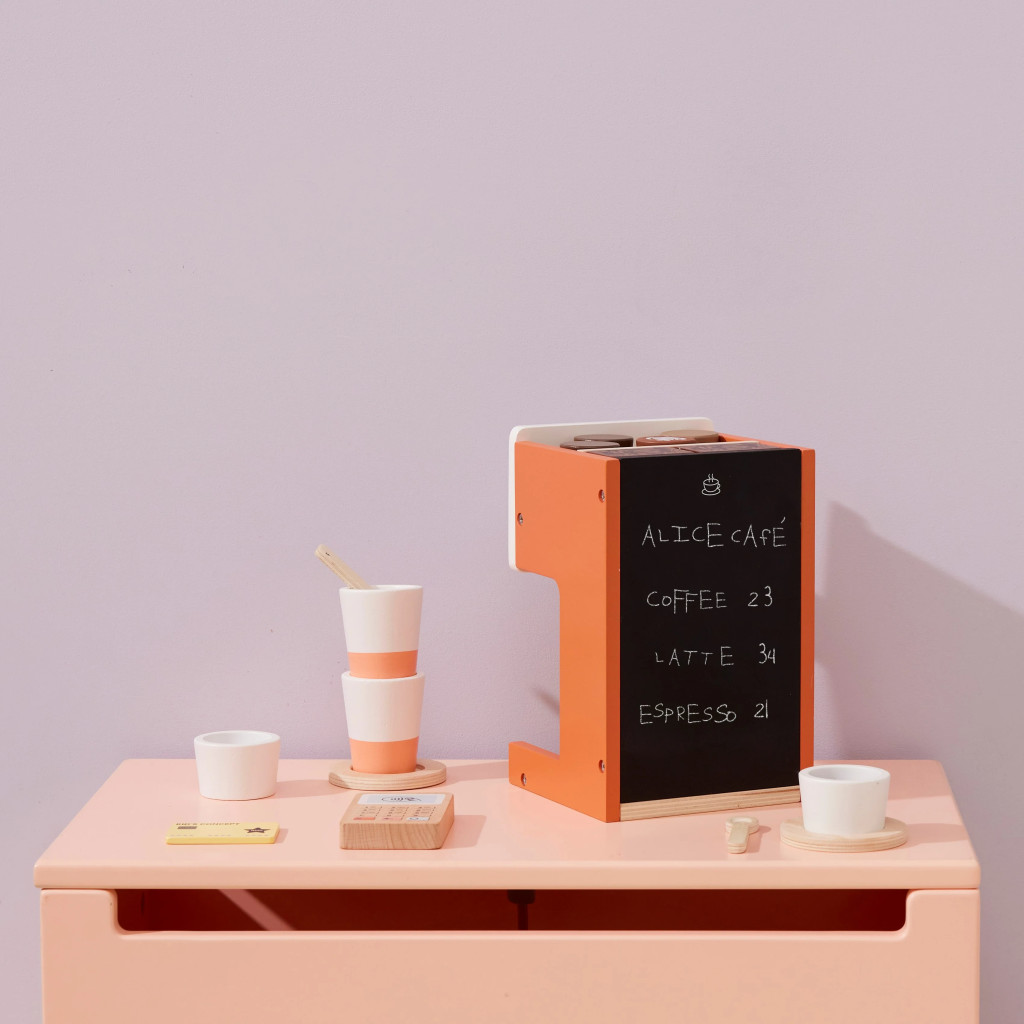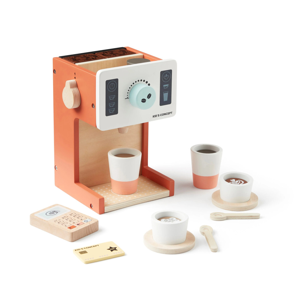 Lépjetek be a mini kávéház világába a Kid’s Concept Kávézó készlettel! A stílusos, faelemekből álló kávégép, fizetőautomata és a hozzá tartozó kiegészítők élethű szerepjátékra csábítják a kicsiket, miközben játékosan gyakorolhatják a vendég–barista interakciót és a finommotorikát. A skandináv letisztultság minden gyerekszobában jól mutat, és azonnali “kávéélményt” nyújt.