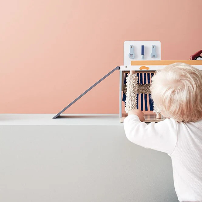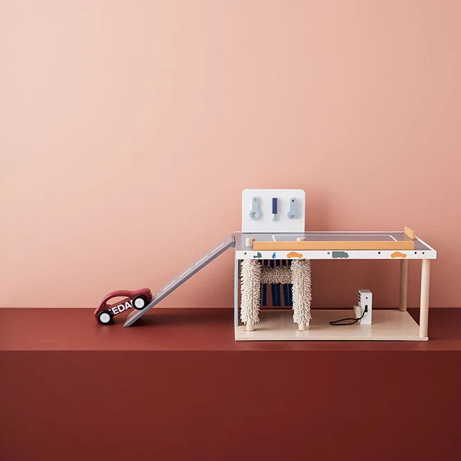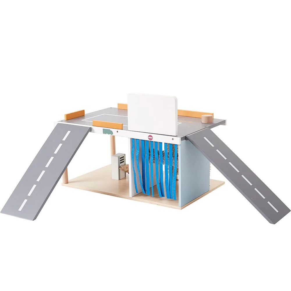 A Kid’s Concept Szervizállomás egyetlen, masszív fa játékközpontban egyesíti az autómosót, a benzinkutat és a szervizt. A puha mosóhengerek, a töltőpisztolyos kút és a szereléshez szükséges kiegészítők élethű, mégis gyerekbarát élményt adnak. A szerepjáték fejleszti a finommotorikát, a problémamegoldást és a kommunikációt, miközben a letisztult skandináv dizájn szépen illeszkedik bármely gyerekszobába. A Kid’s Concept Aiden járművekkel kiválóan kombinálható.