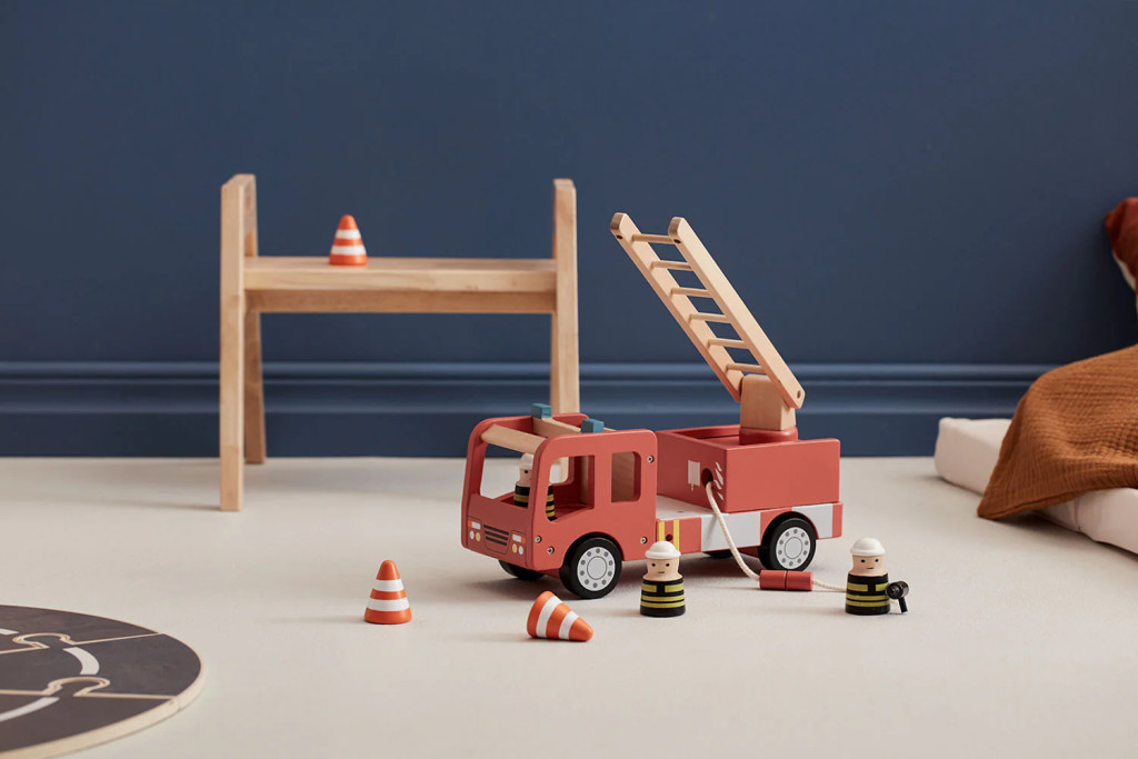 Riasztás! A Kid’s Concept fa tűzoltóautóval a kicsik pillanatok alatt belevethetik magukat a mentés izgalmába. A stabil, gyerekbarát kialakítás és a letisztult skandináv dizájn hosszú, történetmesélős szerepjátékra hív: létra fel, sziréna képzeletben be, és indulhat az oltás!