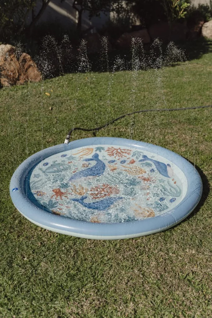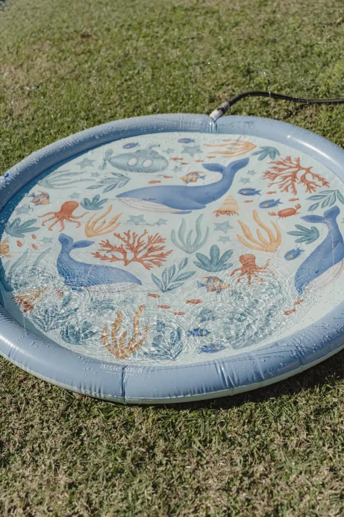 Frissítő vízi játék a forró nyári napokra, óceán ihlette mintával! Ez a locsolócsőre csatlakoztatható vízpermetező szőnyeg garantáltan feldobja a kerti játékot, miközben kellemes hűsölést biztosít a gyerekeknek.