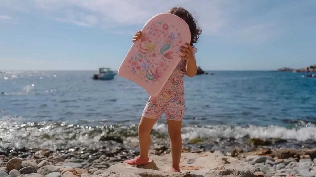 Ez a vidám, sellős mintájú úszódeszka tökéletes segítség a vízben való első magabiztos mozdulatok elsajátításához. Ideális választás úszástanuláshoz és játékos pancsoláshoz, miközben támogatja a gyermek biztonságérzetének kialakulását a vízben.