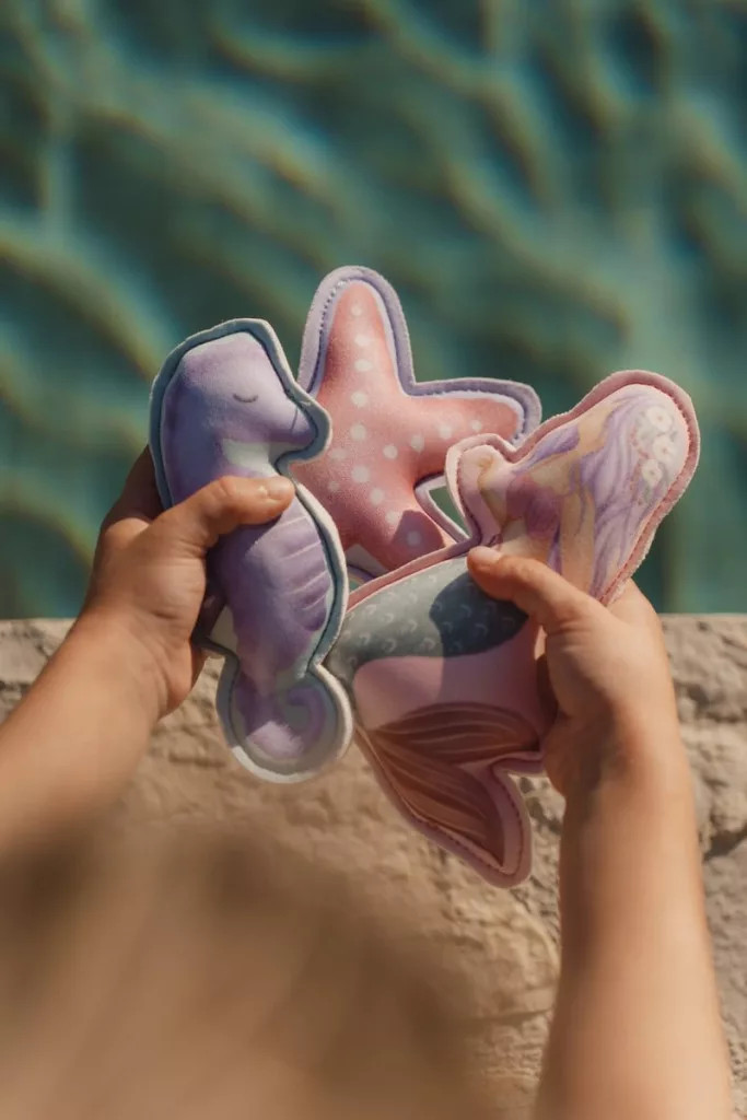 A játék nemcsak szórakoztató, hanem fejlesztő is: segíti a mozgáskoordinációt, a koncentrációt és a vízben való magabiztosság kialakulását. A puha neoprén anyag kellemes tapintású, így a kisebb kezek is könnyen meg tudják fogni a figurákat.