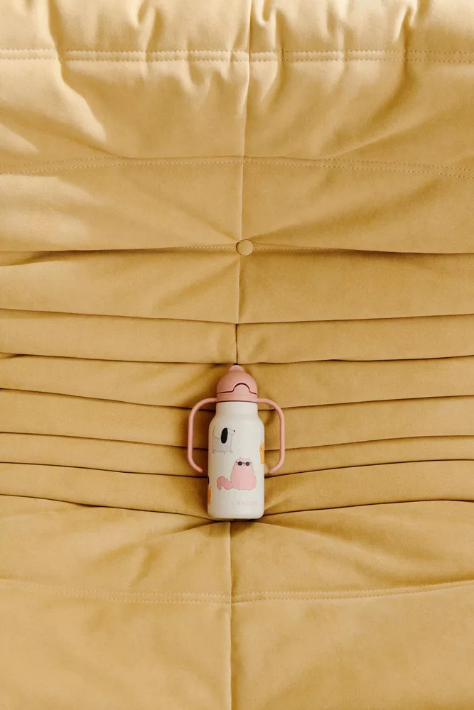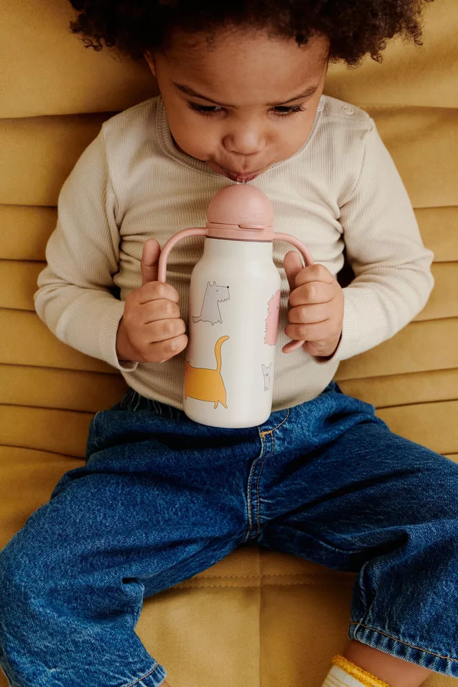 Liewood Kimmie szívószálas itatókulacs – 250 ml, Cats and Dogs / Sandy