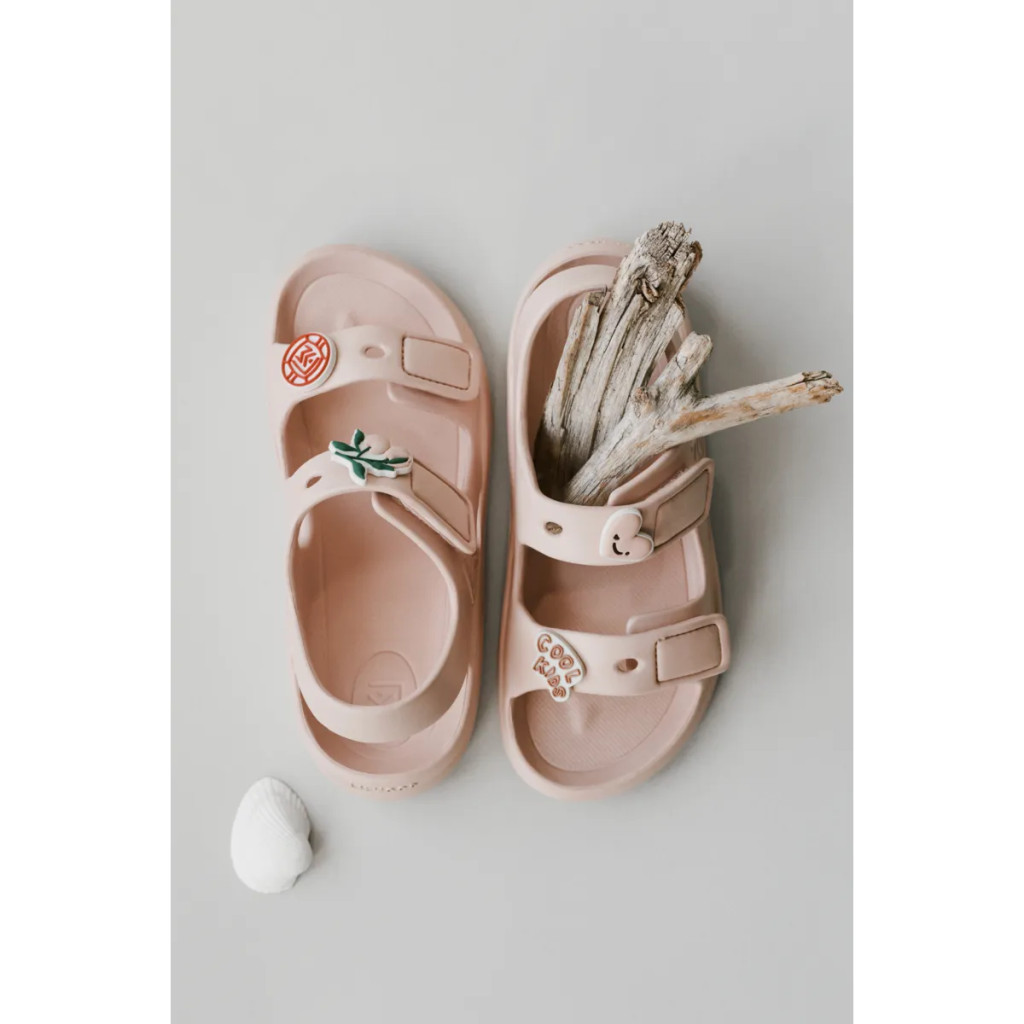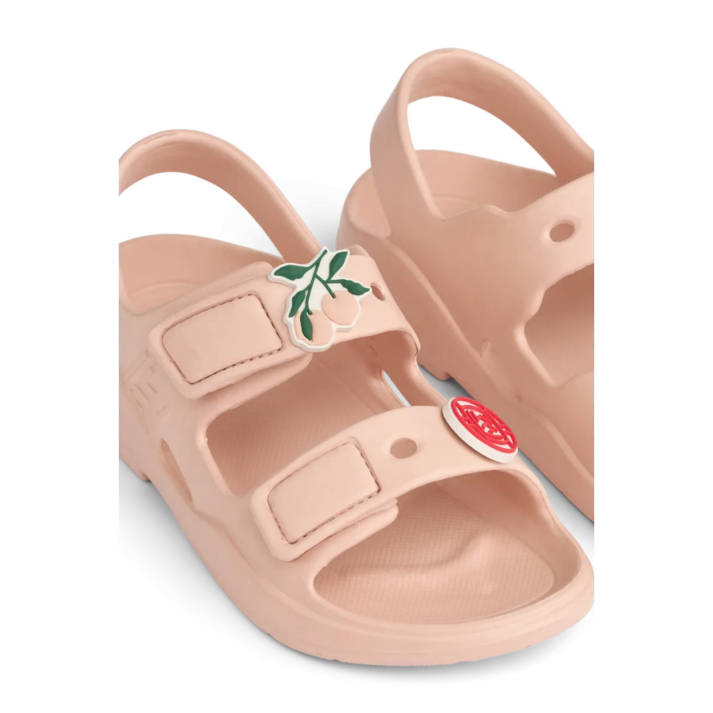 Az ergonomikusan formázott talpbetét extra kényelmet és megfelelő alátámasztást biztosít a növésben lévő lábaknak. Az állítható tépőzáras pánt segít a biztos illeszkedésben, így a szandál könnyen fel- és levehető. A 100% puha EVA habból készült modell rugalmas és kényelmes egész napos viseletre. A Liewood jellegzetes, áthelyezhető charmjai játékos részletet adnak, amelyet a gyerekek saját ízlésük szerint alakíthatnak.