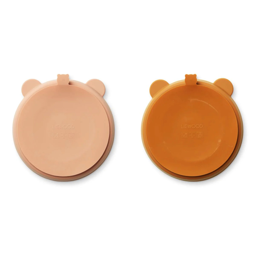 LIEWOOD Stacy szilikon tapadókorongos osztott tányér – 2 db, Mustard / Tuscany Rose Mix