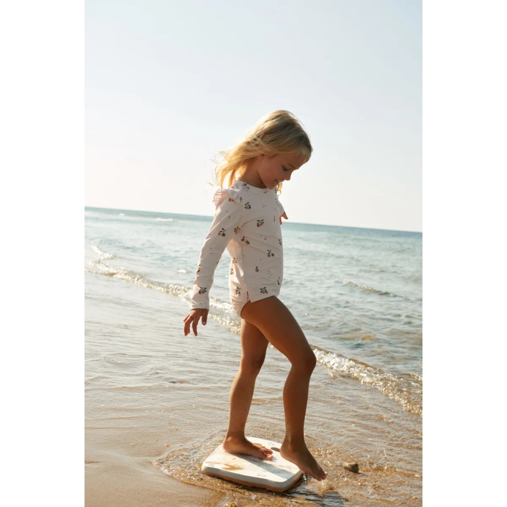 A Liewood Tenley mintás hosszú ujjú úszópóló praktikus és bájos választás a nyári vízi kalandokhoz. A finom fodros részletek játékos megjelenést adnak, miközben a hosszú ujjak extra védelmet biztosítanak a napsütésben.