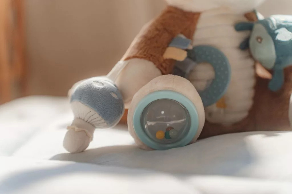 A vállán található zizegő bogár, a csörgő hangok, tapintható címkék, valamint a makk és a gomba mind-mind játékra hívnak. A lábakon lévő karikák és a talpon elhelyezett tükör pedig további izgalmas felfedeznivalókat rejtenek, melyek fejlesztik a baba kíváncsiságát és érzékelését.