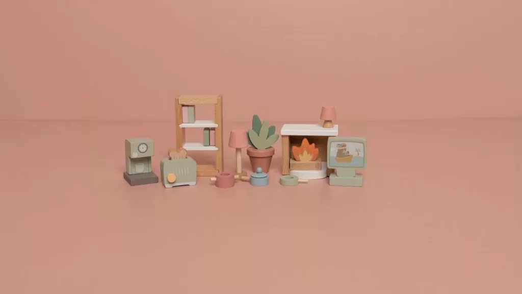 A szettben megtalálható minden, ami egy kényelmes otthonhoz kell – stílusos bútorok, konyhai eszközök és apró kiegészítők, amelyek még valóságosabbá teszik a játékot.