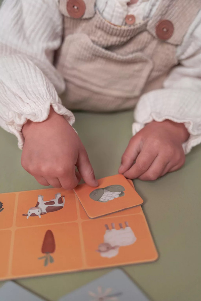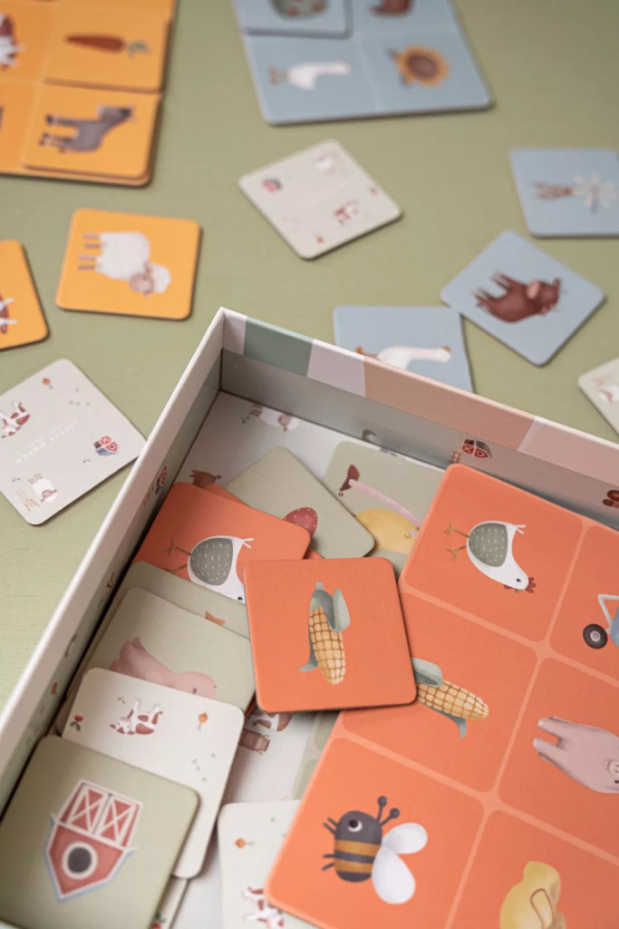 Ez a klasszikus memória- és figyelemfejlesztő játék 4 különböző témájú játéktáblát és 24 illusztrált kártyát tartalmaz. A témák – óceán, libák, rovarok és farm – változatossá és szórakoztatóvá teszik a játékot újra és újra.