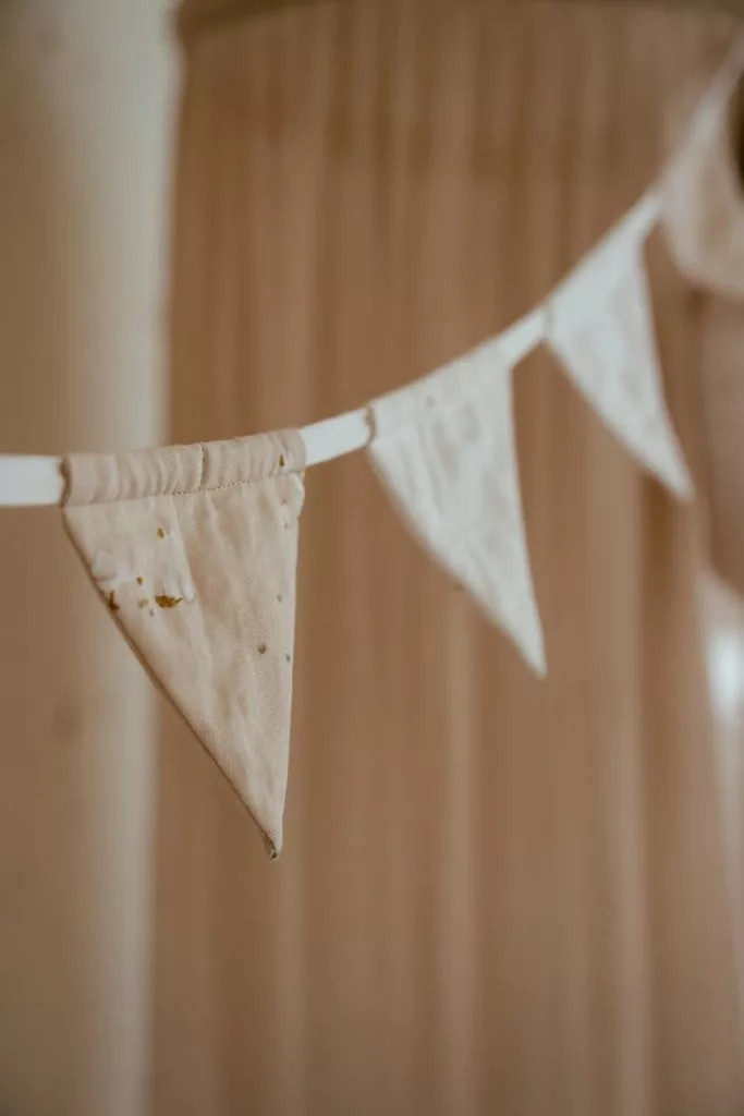 A girland 100% organikus pamutból készült, így puha tapintású, tartós és környezetbarát választás. Letisztult, pasztelles árnyalatai könnyedén illeszkednek bármilyen stílusú gyerekszobába, miközben finom, harmonikus összhatást keltenek.