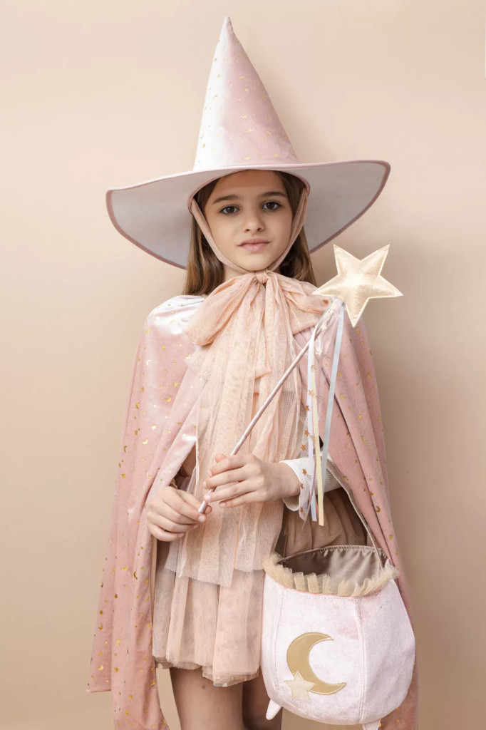 A pálca tetején aranyszínű, párnázott csillag ragyog, szalaggal bevont nyelét pasztell árnyalatú szatén- és tüllszalagok díszítik. Igazi mesés kiegészítő, amely bármilyen szettet különlegessé varázsol.