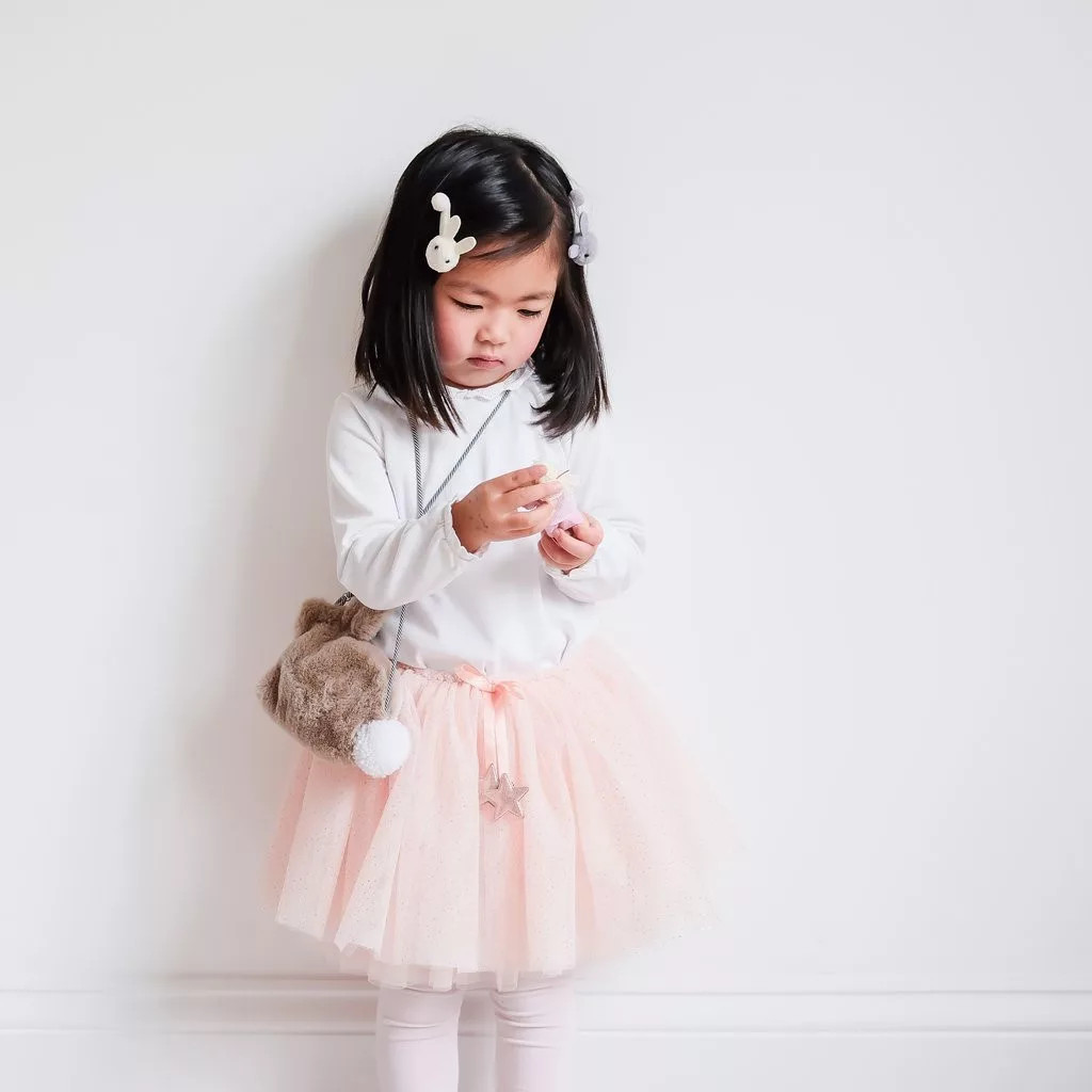 Ez a gyönyörű halvány rózsaszín tütü minden kis hercegnő álma! Hat réteg puha, légies tüllből készült, arany csillámpöttyökkel díszítve, hogy igazi mesebeli hatást keltsen.
