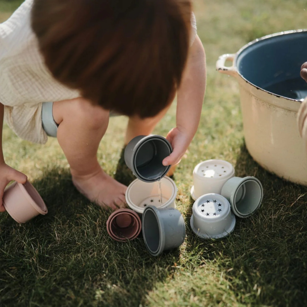 A Mushie Építő poharak szett színes, biztonságos anyagokból készült játék, amely fejleszti a baba finommotorikáját, kézügyességét és a kreativitását. Az Erdei világ témájú poharak különböző méretűek és formájúak, így egymásra pakolva, egymásba illesztve változatos játékélményt nyújtanak. Az élénk, mégis természetes színek és a kedves állatfigurák lekötik a kicsik figyelmét.