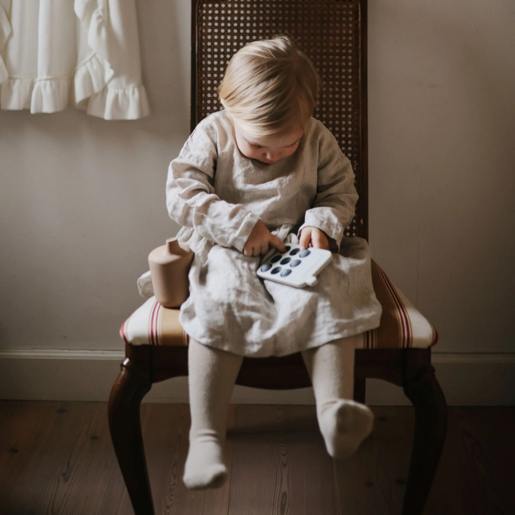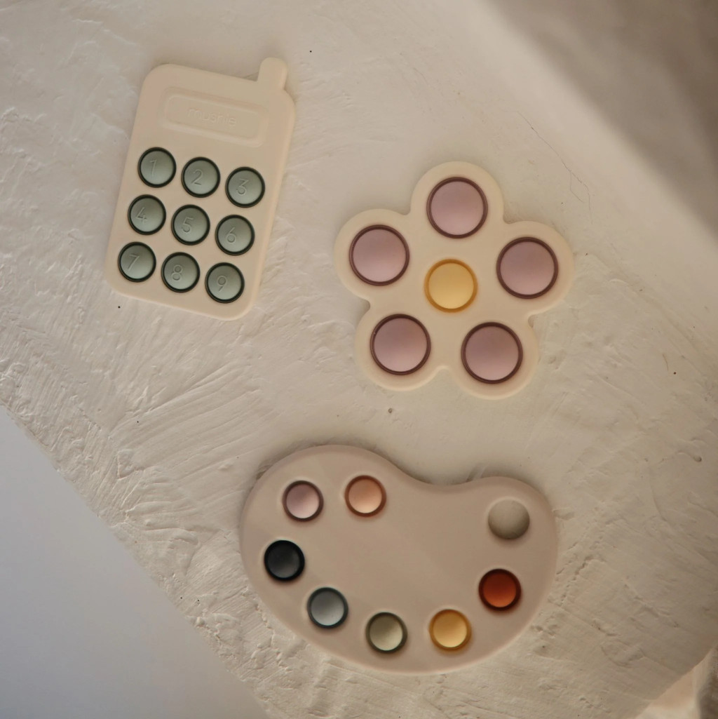A Mushie Pukkasztós játék puha, BPA-mentes szilikonból készült, telefon formájú fejlesztő játék, amely támogatja a baba finommotorikus képességeinek és érzékelésének fejlődését. A világos türkiz árnyalat friss és élénk megjelenést kölcsönöz, miközben a különleges textúrák lekötik a baba figyelmét és ösztönzik a tapintást.