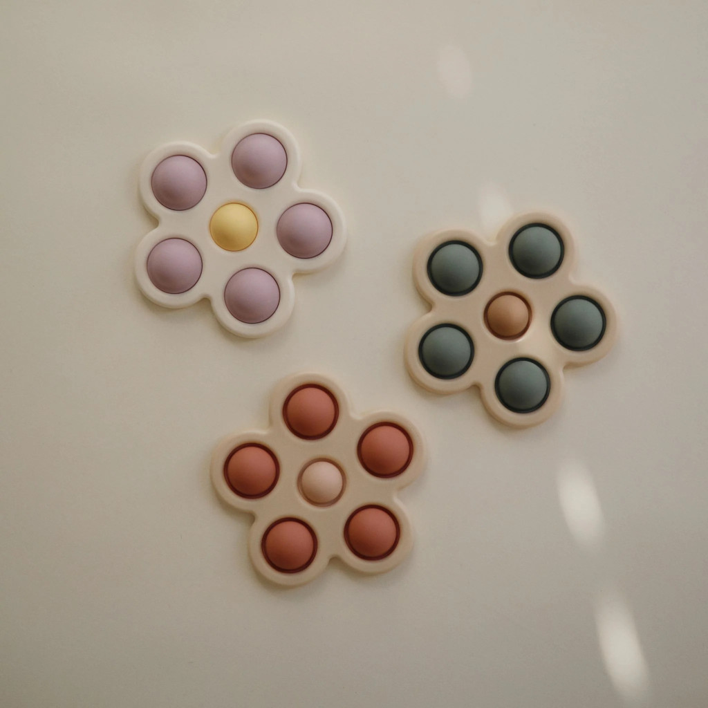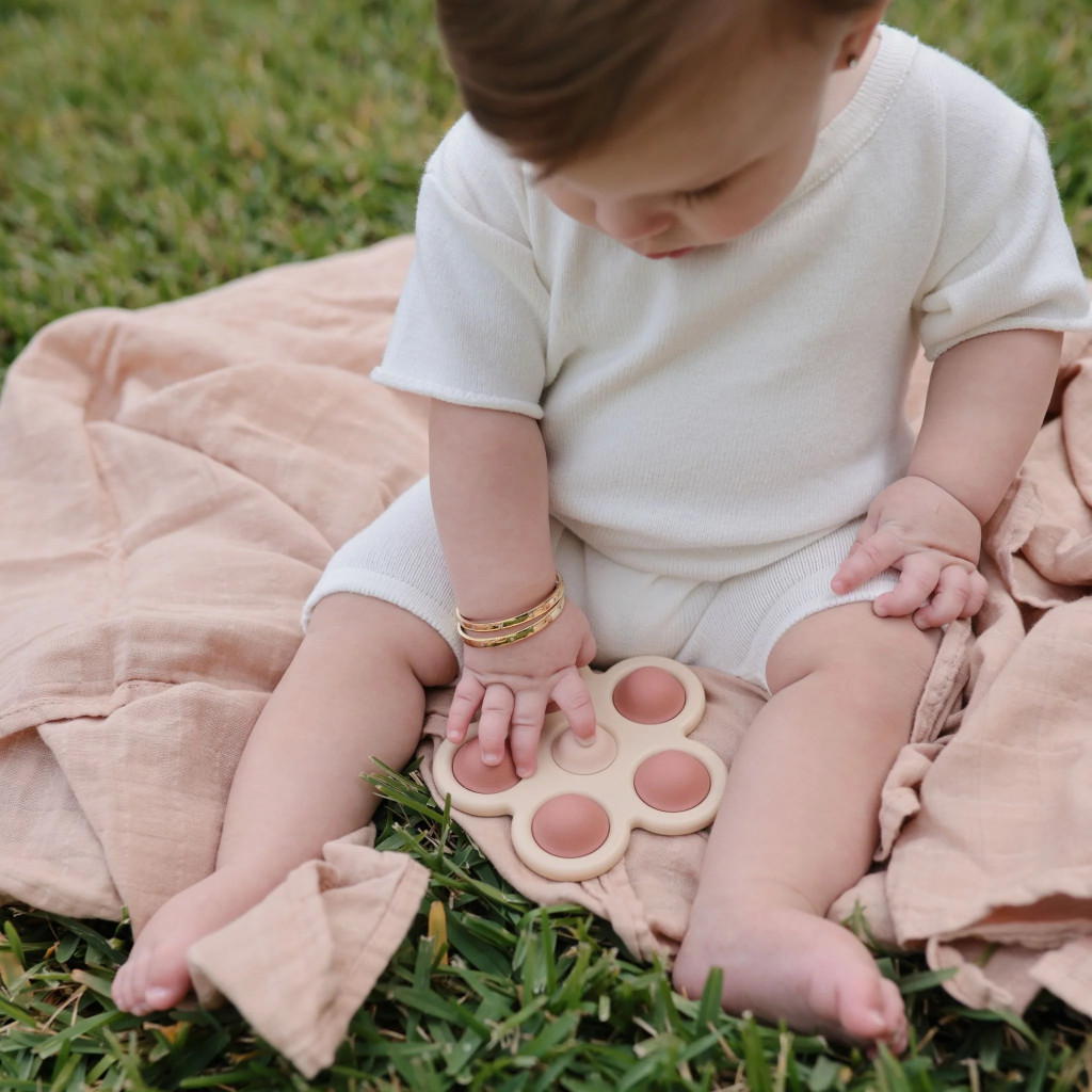 A Mushie Pukkasztós játék puha, BPA-mentes szilikonból készült, virág formájú fejlesztő játék, amely ösztönzi a baba tapintási érzékelését és finommotorikus képességeit. A különleges textúrák lekötik a kicsik figyelmét, miközben a halvány lila árnyalat lágy, nyugtató megjelenést biztosít.