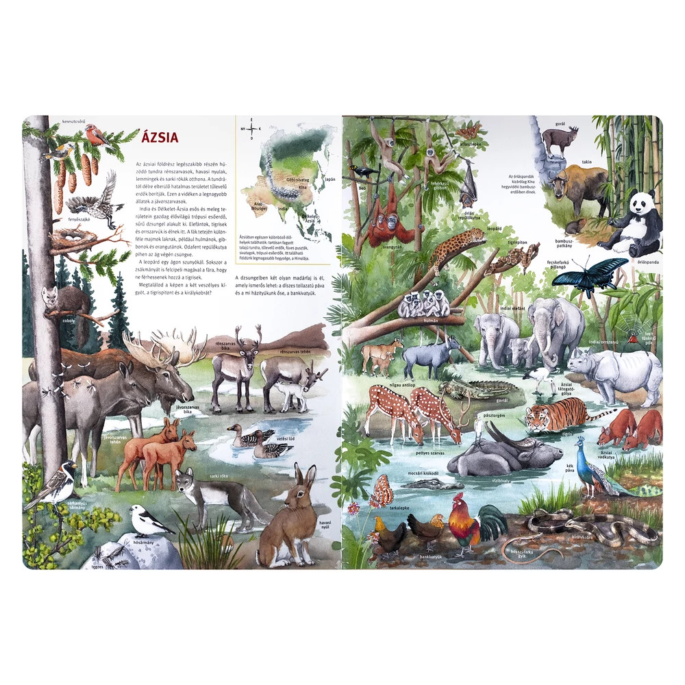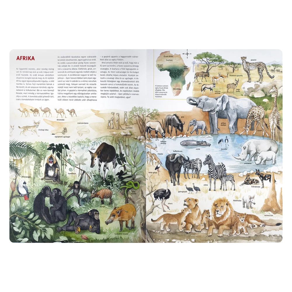 Lenyűgöző ismeretterjesztő könyv, amely kontinensről kontinensre kalauzolja az olvasót az állatvilágban. Színes térképek, részletes illusztrációk és érdekes tények segítségével a gyerekek felfedezhetik a különböző élőhelyeket és az ott élő állatfajokat.