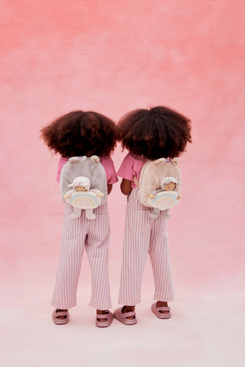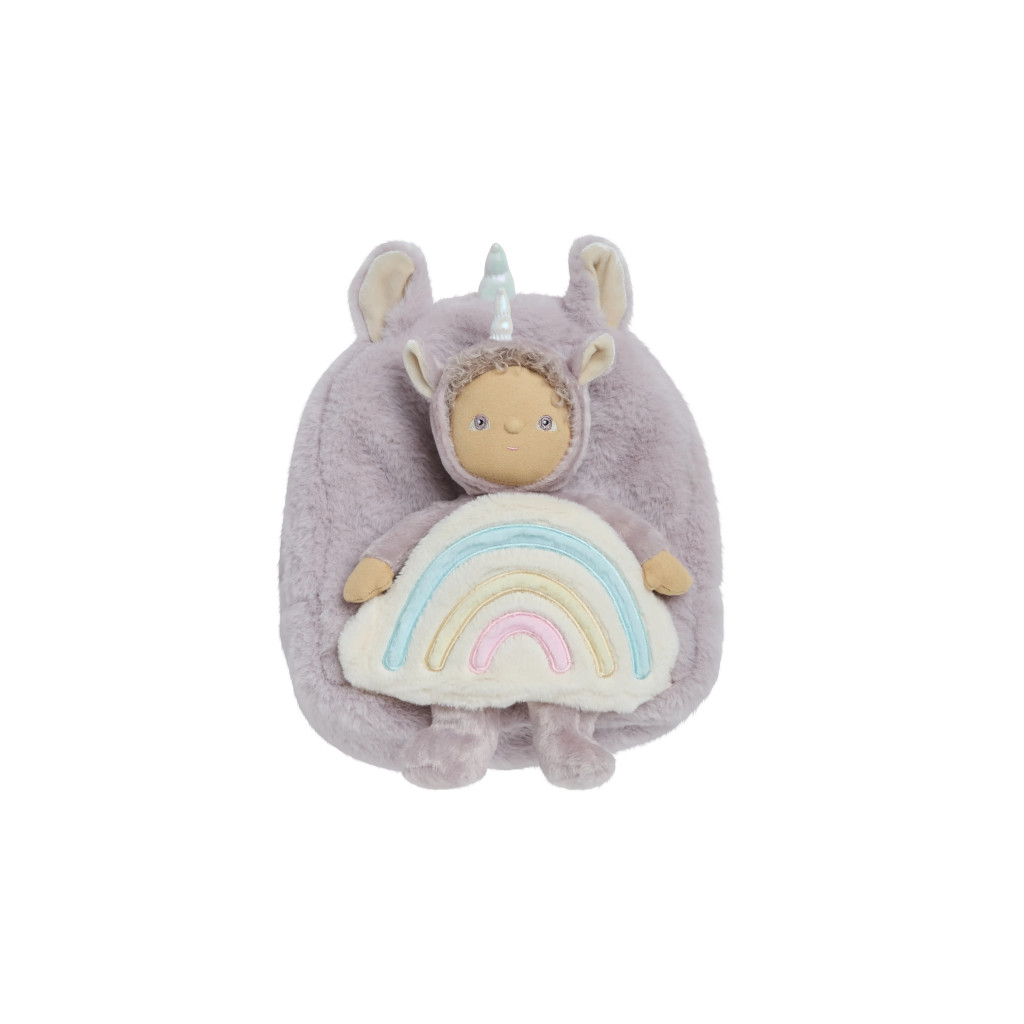 Elől plüss szivárványzseb: rugalmas tartóhurkokkal és patentokkal a kis barátok rögzítéséhez