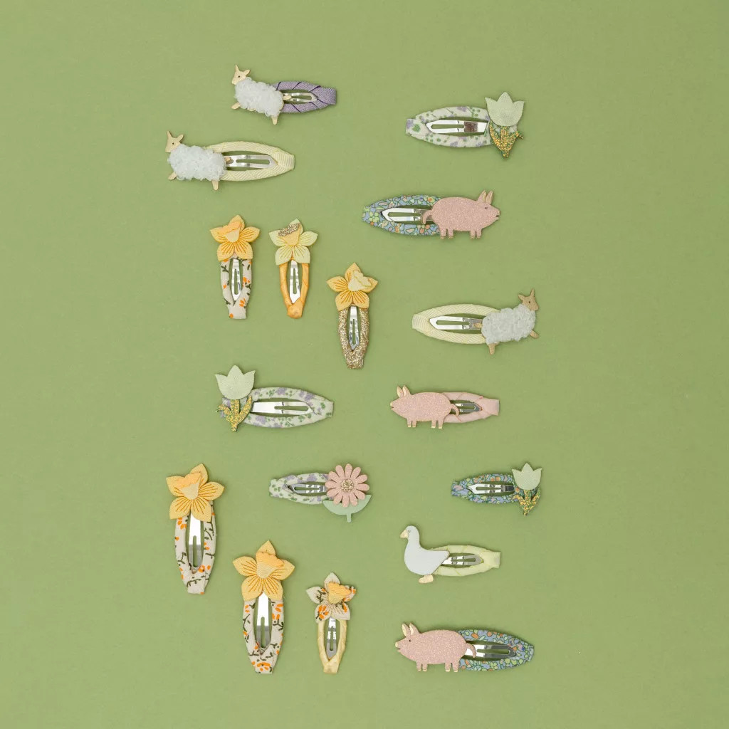 A Farmos mini csatok - 5 db-os szett vidám, vidéki hangulatot varázsol a frizurákba. A kedves kis haszonállatok és friss virágok játékos részletei tökéletesen illenek tavaszi kalandokhoz, kirándulásokhoz vagy a mindennapi viselethez.