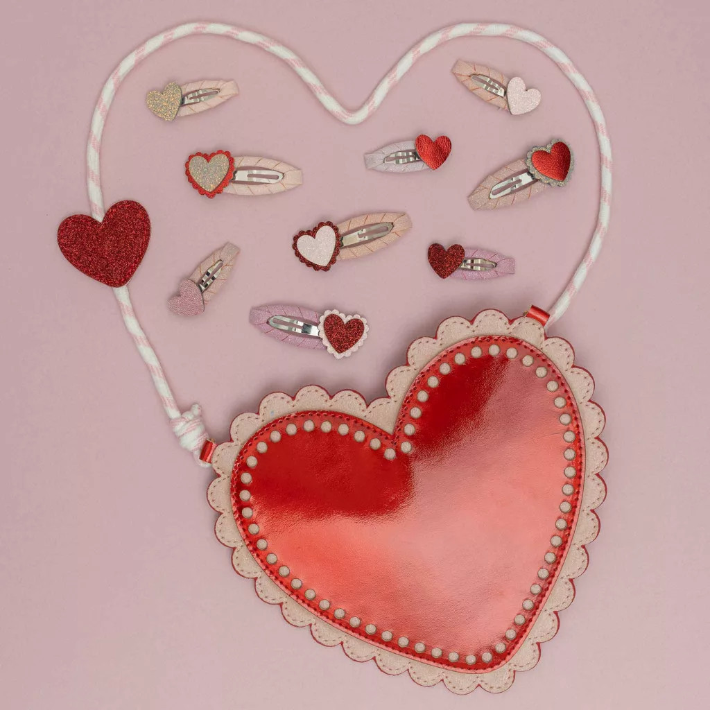 A Szívecskés mini csatok - 5 db-os szett finom, rózsaszín árnyalataival és apró, csillogó szív díszítéseivel igazán szerethető kiegészítője lehet a mindennapi és alkalmi frizuráknak. A kedves, játékos részletek romantikus hangulatot csempésznek a megjelenésbe, miközben diszkrét ragyogást adnak.
