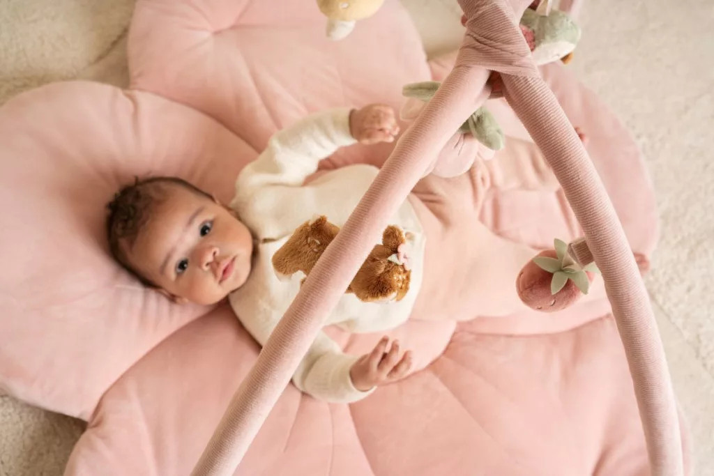 A Little Dutch játékhidas játszószőnyeg – Fairy Garden mesés világot varázsol a babák mindennapjaiba. A puha, kényelmes szőnyeg biztonságos helyet kínál a játékhoz, miközben a fölé ívelt hídon különböző, levehető játékok lógnak, amelyek felfedezésre hívják a kicsiket.